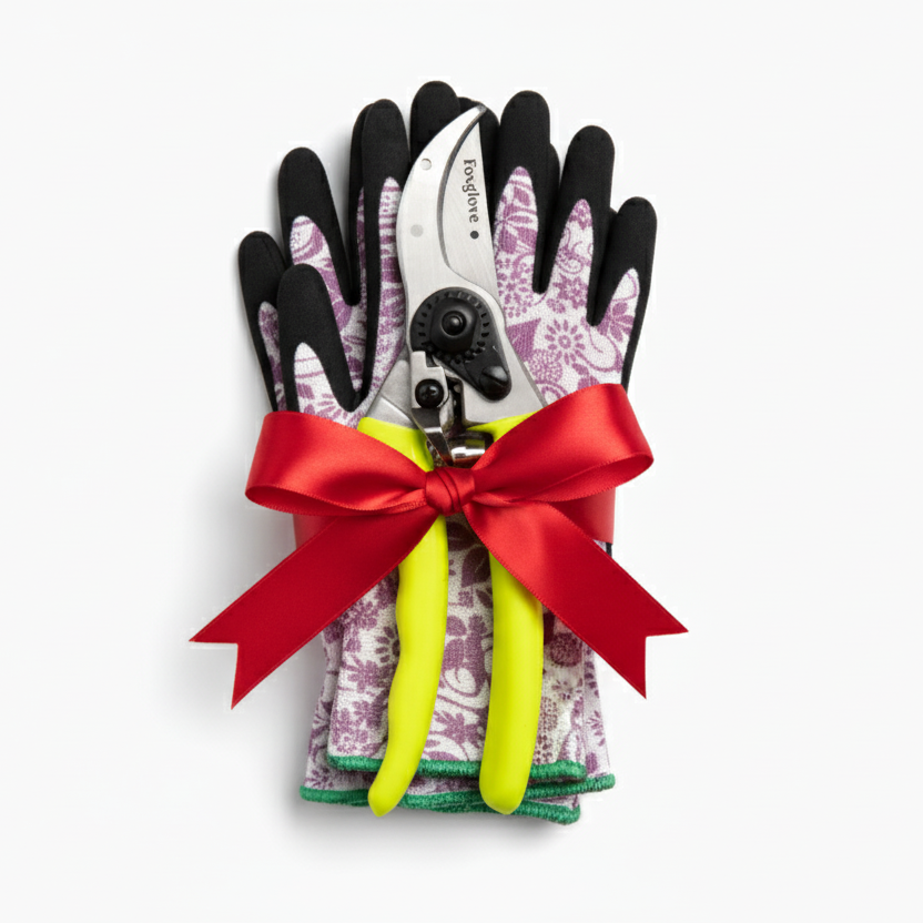 This limited-edition Foxglove Gift Box includes our bestselling Bypass Pruner and Garden Snips, six pairs of Floral Gardening Gloves (available in three sizes), a Foxglove notebook for garden notes, wooden plant markers, and seeds gathered from our own garden — all thoughtfully packed in one beautiful box ready to go under the tree.