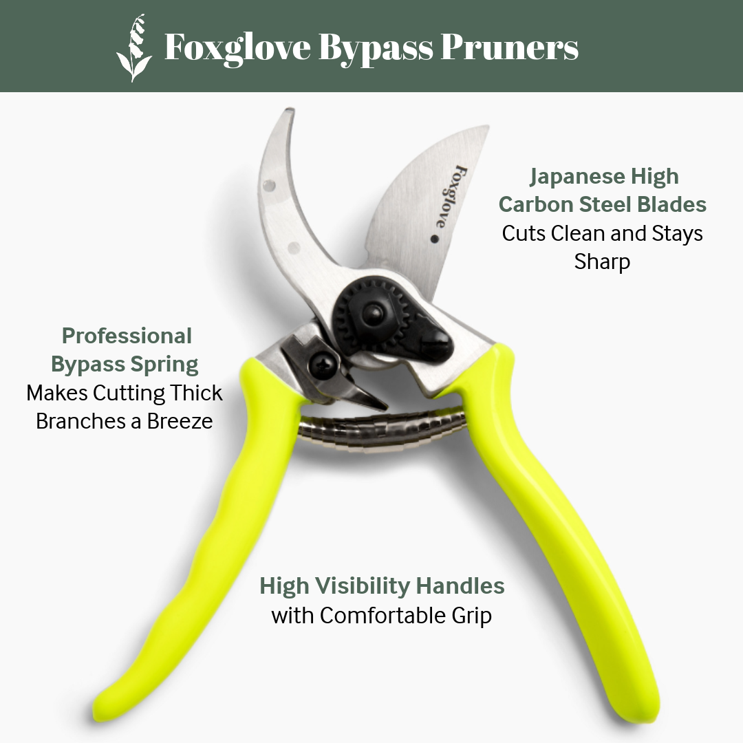 The bypass blade design ensures smooth, healthy cuts on live stems and branches. With an ergonomic, non-slip grip and a sturdy spring, these pruners are comfortable and easy to use even during extended pruning sessions. Our positive locking system keeps the pruners securely closed when not in use, and the vibrant yellow handles make them easy to spot so you won’t accidentally leave them behind.